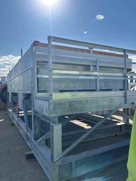 Unused 48027 sq ft (2287 bare sq ft) Carbon Steel finfan heat exchanger. Manufactured by Fabco. Rated 135psi/FV@ 300F, 41.1 MMBTU/hr design duty. 26'0" tube length. (2) 25 hp fans. 336-1"od x .083"mw. (2) 4" inlets and (2)4" outlets. Dimensions: 31'0" l x 12'4" w x 10'3" h (with Platform), 40,000 lbs weight. Designed as Lean Amine Coolers. Under Nitrogen Purge. Built 2024.