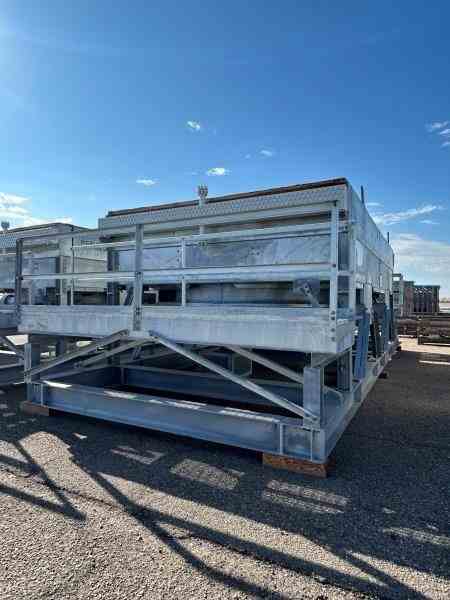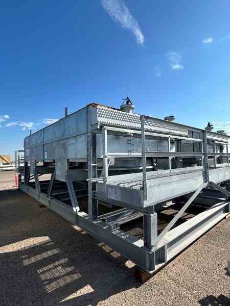 Unused 43387 sq ft Carbon Steel finfan heat exchanger. Manufactured by Fabsco. 2060 bare sq. ft. 24.36 MMBTU/hr design duty. 24'0" tube length. Rated 232psi/FV @430F. (2) 15hp fans. 328-1"od x .095mw. (2)8" inlets and (2)4" outlets. Dimensions: 34'10" l x 14'10" w x 10'10" h (with platforms) 14'2" w (w/o platfroms), 40,295 lbs weight. Designed as Excess MP Steam Condenser. Built 2023. Under Nitrogen Purge.
