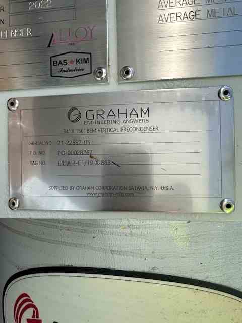 Designed as Primary Surface Condenser. Under Nitrogen Purge. Serial #1343; NB #165.
