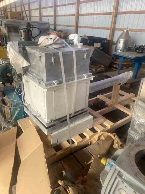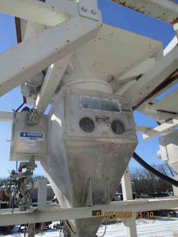 Used dual Super Sack unloading station including position for (2) super sacks. Has hoist for each station, hopper unload, and operator control panel. Includes (1) volumetric feeders for discharging of each sack.