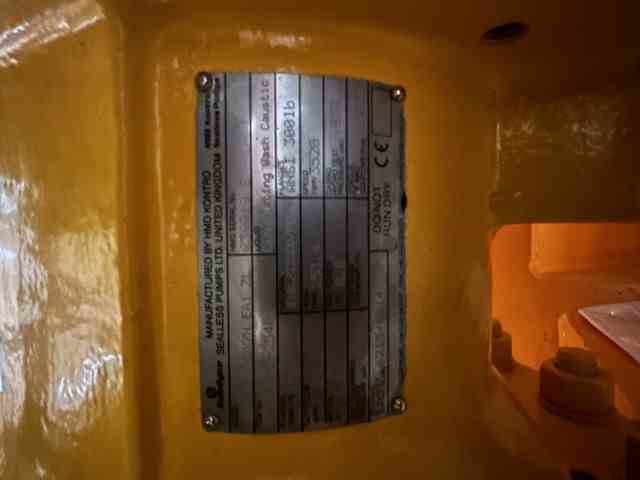 Unused 20GPM 316L Stainless Steel Magnetic Driven Single Stage Centrifugal Pump. Mfg. by Sundyne HMD Kontro. 20.5 gpm @ 253.4 head. 580 psi @ 170 deg. F. Casing 316L SS. Impeller 316L SS. With 15 hp motor. Serial #839919B. Caustic Circulation Pump.