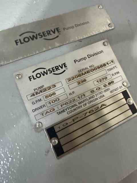 Unused 100HP Alloy 600 Horizontal Centrifugal Slurry Pump. Mfg. by Durco (Flowserve). Model 4M223. 597 gpm @ 236' head. 248 deg. F. Casing: HC600. Impeller: HC600. 100 HP motor. Serial #2206ME003551-1. Bleaching Filter Feed Pump.