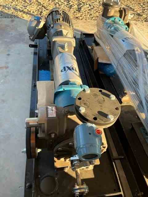 Unused 15 HP Stainless Steel Horizontal Positive Displacement Gear Pump. Mfg. by Blackmer (DXP). Model #MS4. 230 gpm. 5.47' head, 51.5 psi differential pressure. 160 deg. F. Casing 17-4PH Stainless Steel; Vance: Duravane Composite. 4" suction, 4" discharge. 6.65:1 gear ratio. 15 hp motor.Serial #2373994. Rail Unloading Pump.