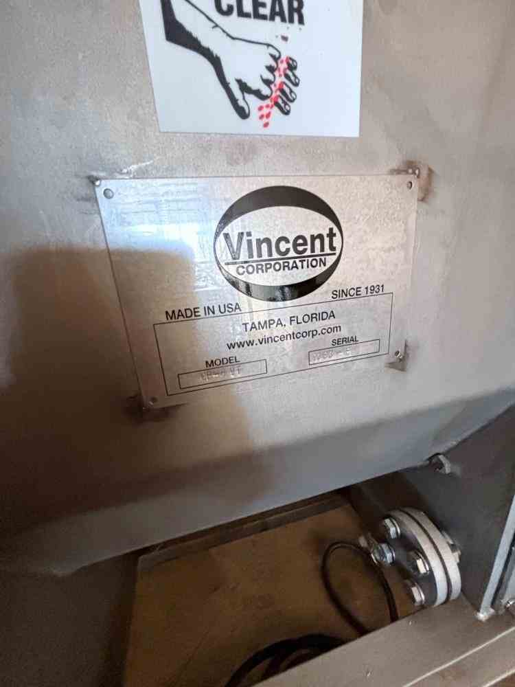 Used Vincent Corporation Model CP-4-VT Compact Stainless Steel Screw Press. 4" diameter screw. 1775 RPM, 1.5 HP motor. 3/60/230-460V.