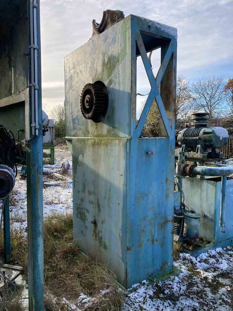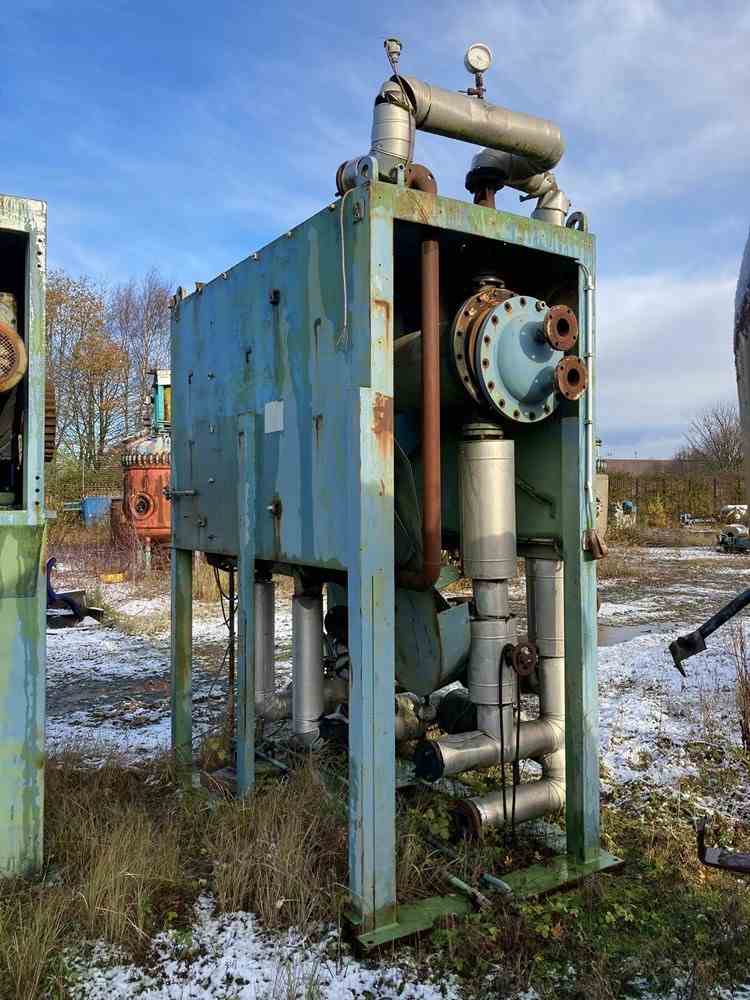 Used 282 cu ft (8000 Liter) Stainless steel double cone vacuum dryer. Manufactured by Henkhaus. 8000 liter (282 cubic foot) total capacity. 2700mm diameter X 630mm straight side X 1100mm long cones. Internal rated FV @250C. Includes internal vacuum tube. Carbon steel jacket rated 2.5 bar @ 250C. (2) mounting plinths. Second plinth contains PIV drive rated 1440rpm input, 1.73/1 ratio, 830rpm output & 153.8 ratio, 11.5 - 2.55rpm. Electric motor rated 5.5 kW, 380 volt, 3/50, 1450 rpm. Leybold-Heraeus vacuum pump, KAT 11640, FAB no. 08022018, driven by 4 kW, 220/380 volt, 3/50, 2870 rpm motor, also with Pompe Cucchi pump.
