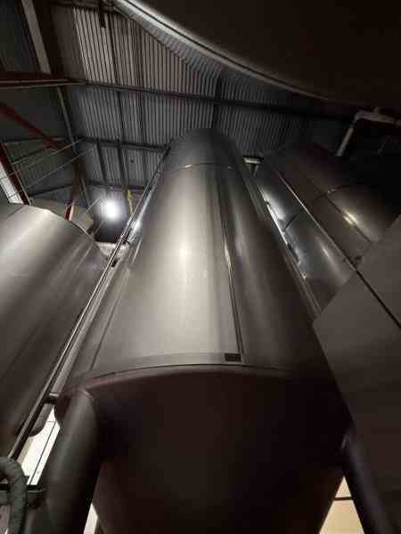 Used 16600 Gallon 304 Stainless Steel tank, jacketed, cone bottom. Manufactured by Mueller. Dished head. 10' 1 7/8" OD x 36' 11 3/8" Tall. Shell rated 15 psi @100F. Jacket rated 100 psi @100F. Weight 13200 lbs. Built 1995. Serial #164563-1. Previous use: 400 BBL brewery fermentation vessel. (qty 36 available)