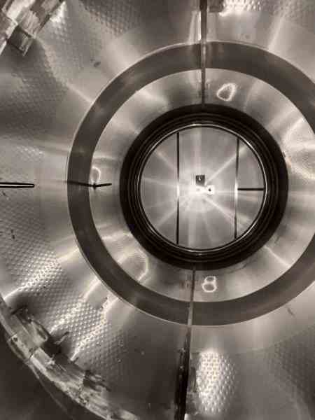 Used 8300 gallon 304 Stainless Steel tank, jacketed, cone bottom. Manufactured by Mueller. Model F. Internal 15PSI@100F. Cooling Jacket 100PSI@100F. Dome top. Previous use: 250 BBL Brewery Brite Beer Tank.