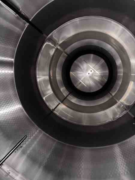 Used 16,600-gallon 304 stainless steel tank, jacketed, cone bottom. Manufactured by Mueller. Dished head. 10' 1 7/8" OD x 36' 11 3/8" tall. Shell rated 15 psi @ 100°F. Jacket rated 100 psi @ 100°F. Weight: 13,200 lbs. Built in 1995. Serial #164563-13. Previous use: 400 BBL brewery fermentation vessel.