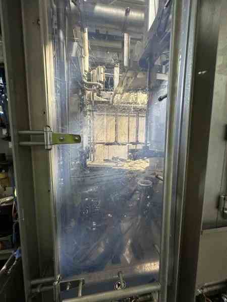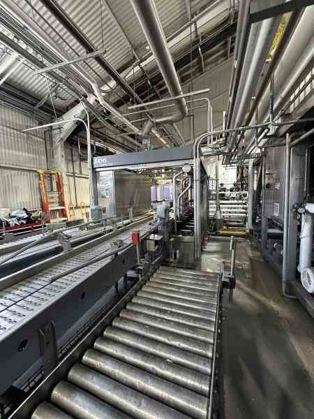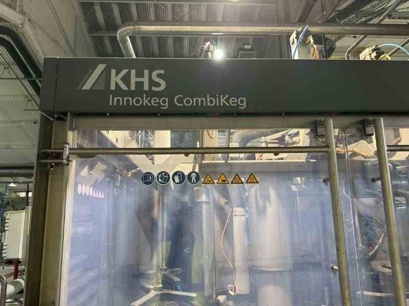 Used Keg Washer, cleaner and filler system. Manufactured by KHS GmbH. Model Innokeg COMBIKEG R5. For product flow speed control, maximum filling speeds are 1.5 l/s (0.396 gal/s, 23.78 GPM), 2.2 l/s (0.581 gal/s, 34.87 GPM), and 2.5 l/s (0.660 gal/s, 39.63 GPM), while orifice control systems operate at 2.0 l/s (0.528 gal/s, 31.70 GPM). Minimum pressures at the filling head range from 1.7 bar(g) (24.66 psi) to 3.6 bar(g) (52.21 psi), while orifice control systems operate at 1.2 bar(g) (17.40 psi). Typical product temperatures are maintained between +1 °C (33.8 °F) and +6 °C (42.8 °F), with CO2 content in the range of 5–6 g/l (0.67–0.80 oz/gal). Product transfer pressures before the DFC valve vary between 3.0 bar(g) (43.51 psi) and 4.9 bar(g) (71.07 psi) for different fittings, with a maximum of 5 bar(g) (72.52 psi) in product flow speed control systems. Spray product usage is 27 ml/keg (0.91 fl oz/keg) for flat fittings and 67 ml/keg (2.27 fl oz/keg) for well-type fittings, with up to 5 ml/keg (0.17 fl oz/keg) recoverable for reuse. Dimensions: 8' x 14'3" x 8' (Wx L x H). Built 2016.