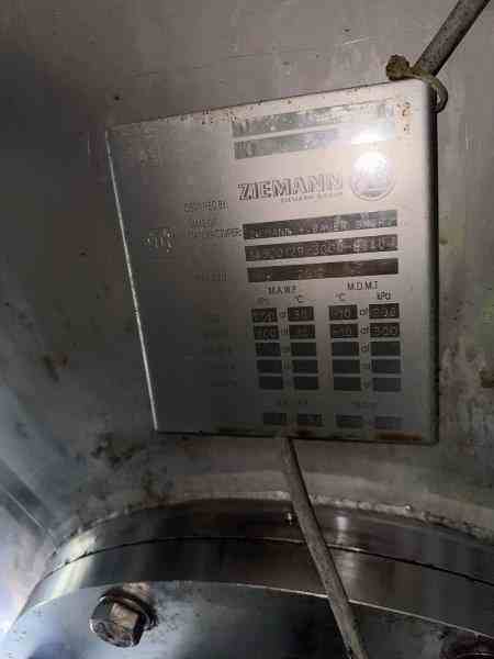 Used 9300 gallon (300 BBL) 304 stainless steel jacketed pressure vessel. Manufactured by Ziemann Bauer GmbH. Vessel Rated 29psi @86F, jacket rated 43psi @86F. 10' dia x 24' tall. Dished head and bottom.Previously used in brewery as brite pressure vessel, cooled with Glycol @24F. National board #162. Serial #8640-14300129/3000. Built 2012.