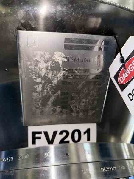 Used 6200 gallon (200 BBL) 304 stainless steel jacketed pressure vessel. Manufactured by Ziemann Bauer GmbH. Vessel Rated 19psi @86F, jacket rated 43psi @86F. 8' 6" dia x 27' tall. Dished head, cone bottom.Previously used in brewery as fermenter, cooled with Glycol @24F. National board #157. Serial #8635-14300129/2000. Built 2012.