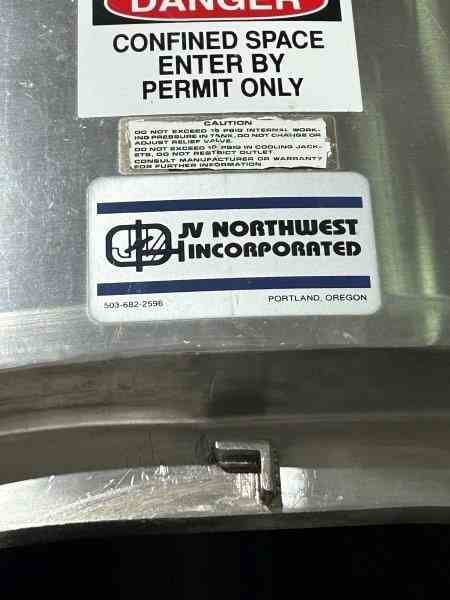 Used Jacketed Stainless Steel Fermenter manufactured by JV Northwest. Cone bottom, dished top. W-8’3” x L- 8’5 x H-14’8.