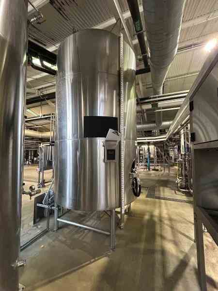 Used Jacketed Stainless Steel brite tank, manufactured by JV Northwest. Dished bottom and top. Dimensions: W-6’7” x L-6’10” x H-13’5”