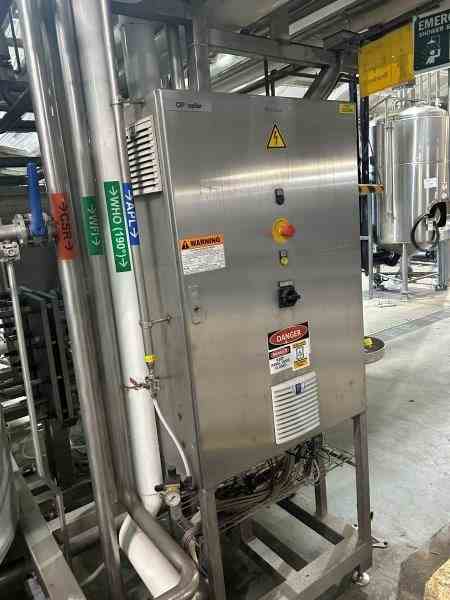 Used (3) Tank CIP skid, maufacturd by BrauKon. Consisting of causting soda, acid and water tanks. Each tank 528 gallon capacity. Includes control panel.
