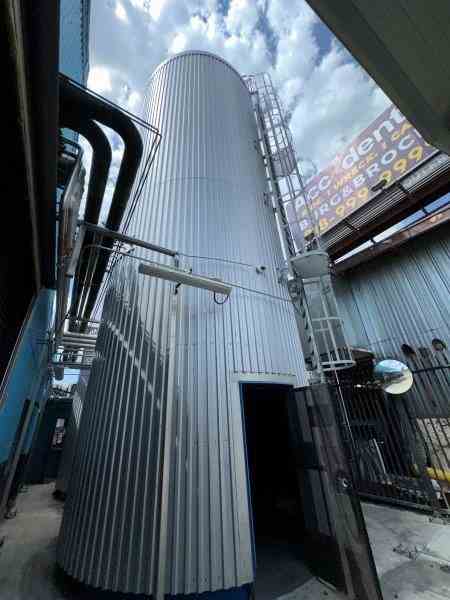 Used 27000 gallon (874 BBL) 304 stainless steel jacketed pressure vessel. Manufactured by Ziemann Holvrieka. Vessel Rated 29psi @86F, jacket rated 43psi @86F. 13' 7" dia x 42' tall. Dished head, cone bottom.Previously used in brewery as fermenter, cooled with Glycol @24F. National board #724. Serial #300786. Built 2018.