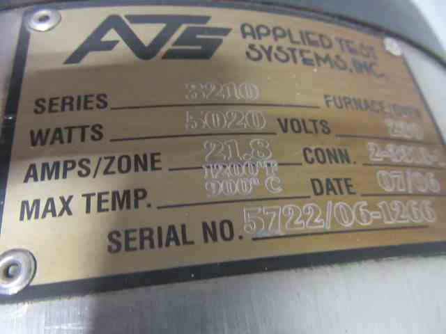 Used 3.125"D Rotary Lab Calciner. Manufactured by Applied Test Systems (ATS). Series 3210. Max Temp 1200F (900C). 45"L x 1.625" inlet with 3.125" large hot section. 1/15HP motor. 230V, 2050W. Controls with Temp control. Serial #5722/06-1266. Built 2006.