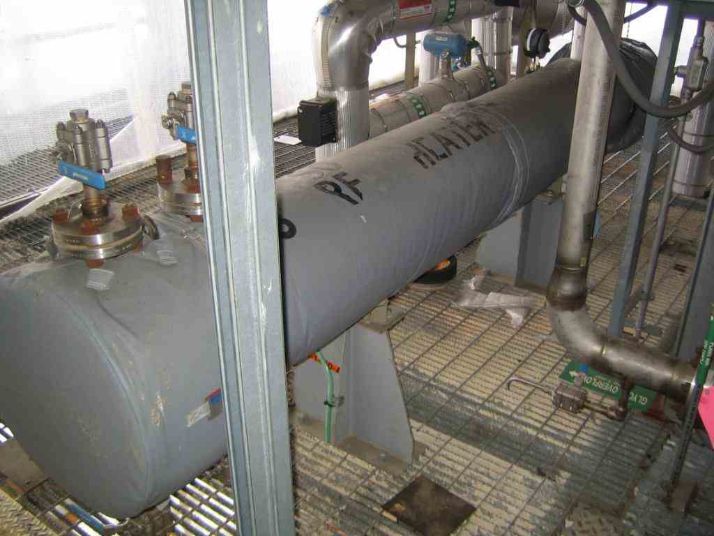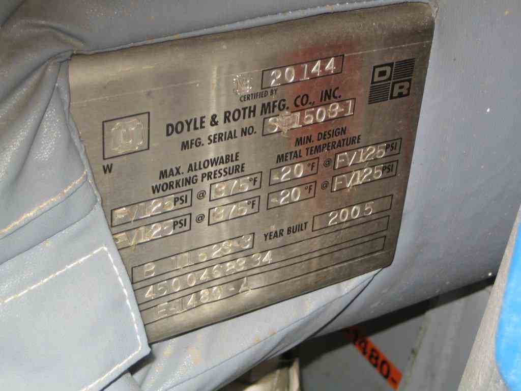 Used 105 Sq Ft Horizontal SS Shell & Tube Heat Exchanger. 304-SS Shell rated 125 PSI/FV @ 375 deg F. 304-SS Tubes rated 125 PSI/FV @ 375 deg F. 304-SS Heads. Shell dia : 10.75" x 95.75" L (OAL - 111.75"). (80) Tubes .625" dia x 95.75" L. Passes: Shell - 2; Tubes - 6. Nozzles: Shell - (2) 2"; Tubes - (2) 2". Tema Type BFM. Mfg by Doyle & Roth, 2006. S/N: S-1503-2, NB# 20149. Approx 900 lbs. Previous Use: Styrene Heater. U-1 and drawing available.