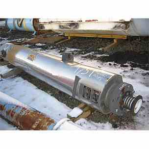 Used 94 sq. ft. vertical cylindrical graphite block heat exchanger. MFD by Carbone type PBC8DL-8PU-1-3. Serial # 11122, built 1998, NB# 1291. ASME code stamped. 185 psi @ 400 deg. F shell side, 100 psi & FV @ -20/+400 deg. F tube side. 1 pass axial, 3 pass radial block. Shell 15" dia. x 130 3/8" long. Openings: Tube side - 1-4", 1-2"; Shell side - 1-3", 2-1/2".