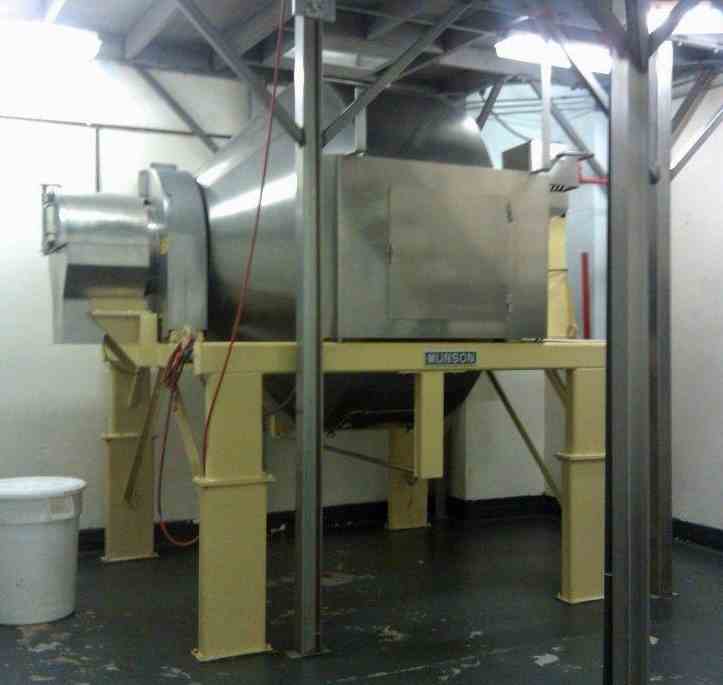 Used Munson 75 Cu. Ft. Rotary Batch Mixer, Model 700-DSS75, 10 HP, stainless steel contact surfaces, serial number 14095. Mounted on painted steel frame.
