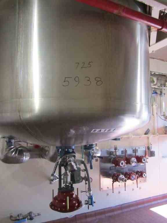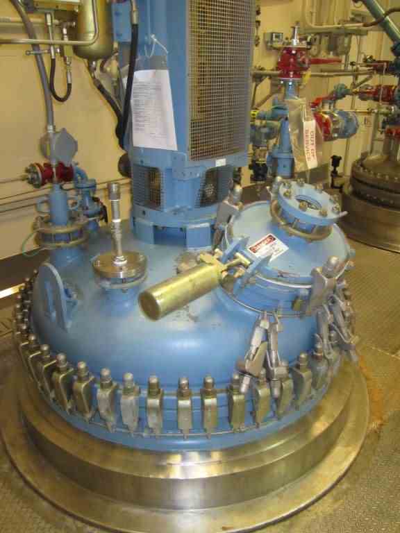 Used Tycon approximately 700 Gal. Glass Lined Reactor. Rated 150 PSI/full vacuum internal@450 Deg. F. Jacket rated 100 PSI @ 450 Deg. F. Built in 2000. Full clamp top. With air-operated plug valve. Type 808 glass. 3-blade retreat curve agitator. 7.5 HP,460 volt, 1755 RPM right angle XP drive. Lug mounted. S/N 8635, NB 14. Estimated weight 6500#.