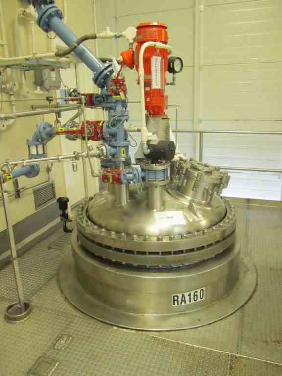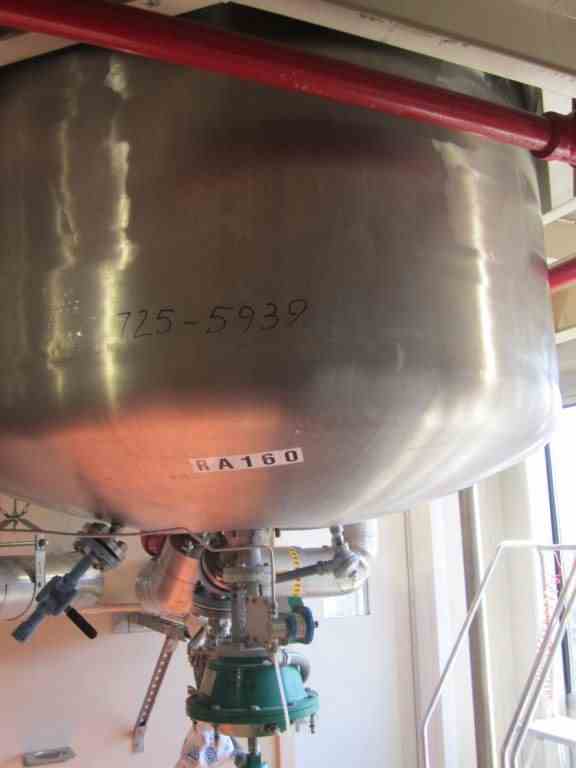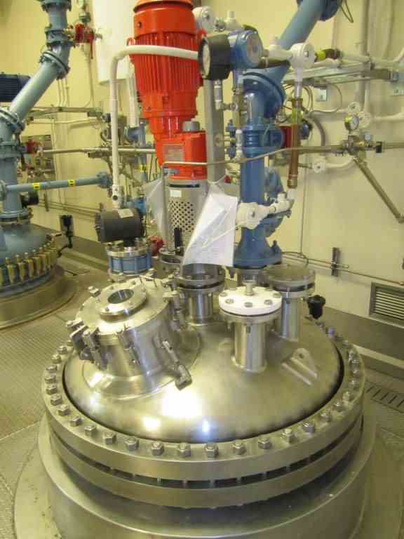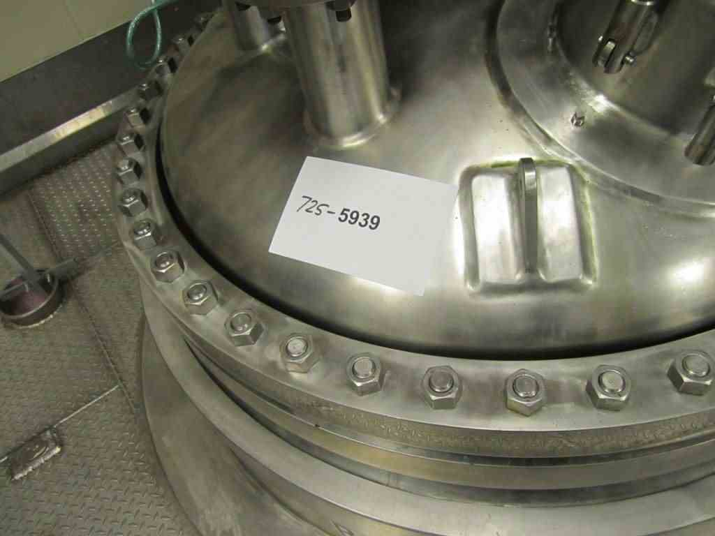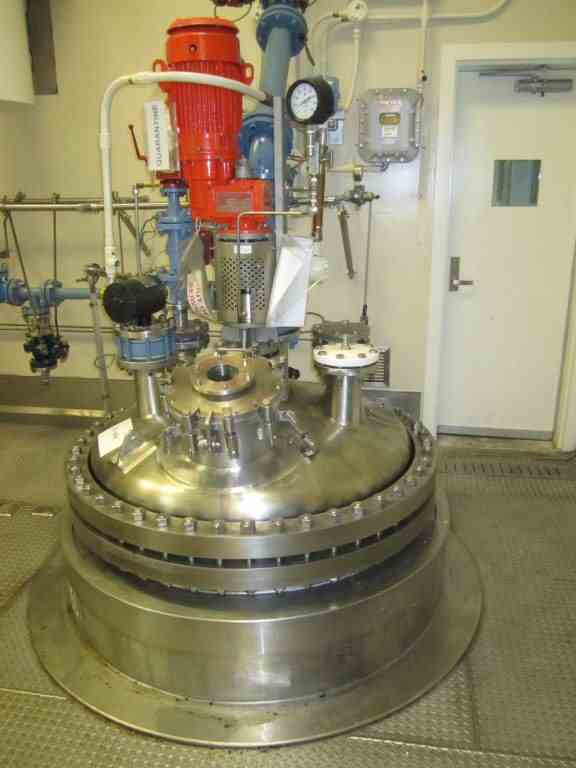 Used 300 gallon Robert Mitchell Hastelloy C276 reactor. Rated 100 PSI/full vacuum internal @ 450 Deg. F. Jacket rated 150 PSI/full vacuum @ 450 Deg. F. Bolted top head. With air-operated valve. 5 HP Pro-quip Model 500VHHW14 agitator. 460 volts, 1750 RPM. Lug mounted. Built 2001. S/N 6653, NB 381. Estimated weight 8977#.