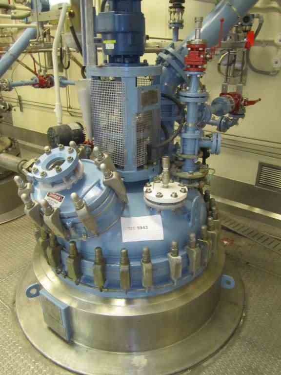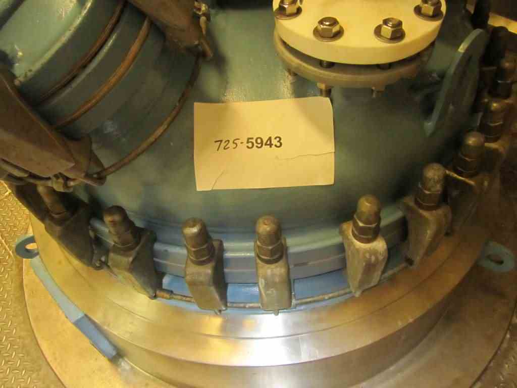 Used Tycon approximately 255 Gal. glass lined reactor. Rated 150 PSI/full vacuum internal @ 450 Deg. F. Jacket rated 150 PSI/full vacuum @ 450 Deg. F. Type 808 glass. Full clamp top. 3-Blade retreat curve agitator. 7.5 HP, 460 volt, XP. Lug Mounted. Built 2000. S/N 8634, NB 13.Estimated Weight 1650#.
