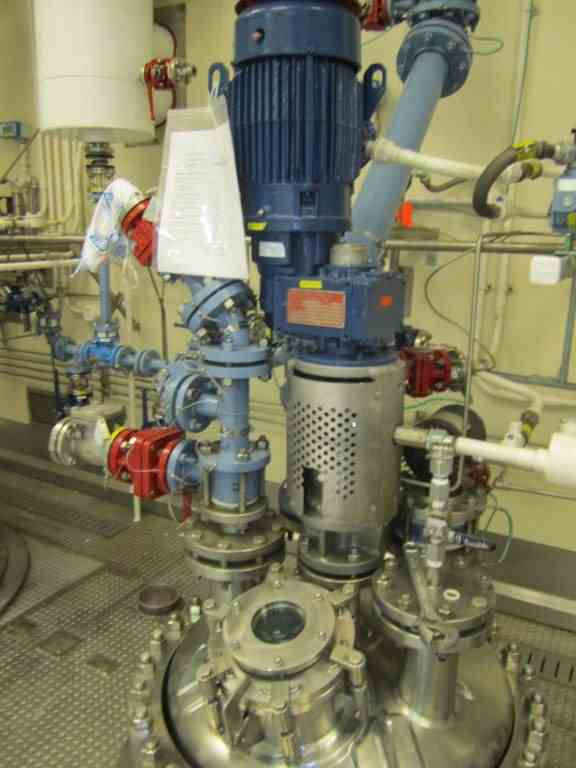 Used 100 gallon Robert Mitchell Hastelloy C276 reactor. Rated 100 PSI internal @ 450 Deg. F. 304L stainless steel jacket rated 150 PSI @ 450 Deg. F. Bolted top head. With valve. 3 HP Pro-Quip Agitator. Lug Mounted. Built 2001. S/N 6649, NB 377. Estimated weight 3600#.