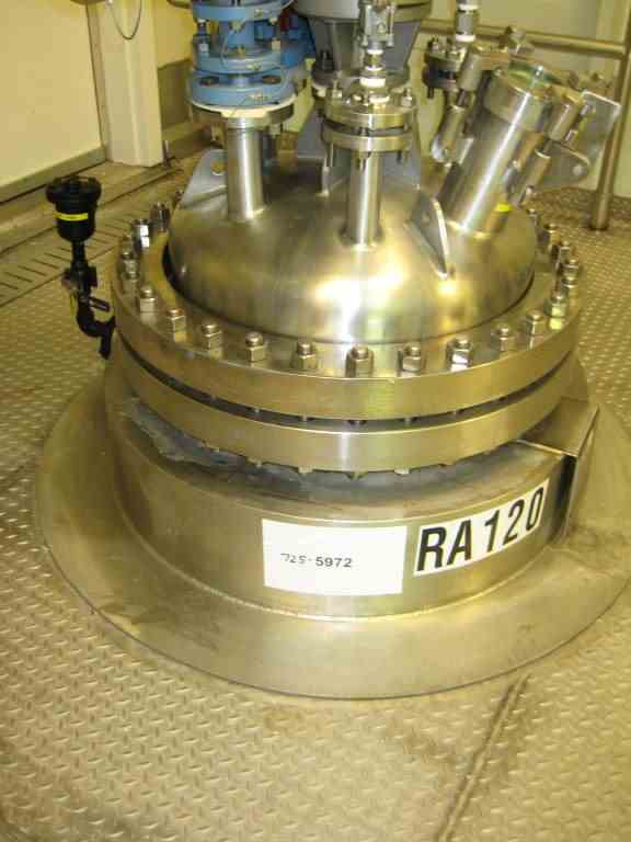 Used 50 gallon Robert Mitchell Hastelloy C276 reactor. Rated 100 PSI/full vacuum internal @ 450 Deg. F. Jacket rated 150 PSI/full vacuum @ 450 Deg. F. 2 HP, 3 phase, 60 cycle, 460 volt, 1725 RPM Pro-quip agitator. Lug Mounted. Built 2001. S/N 6647, NB 385.