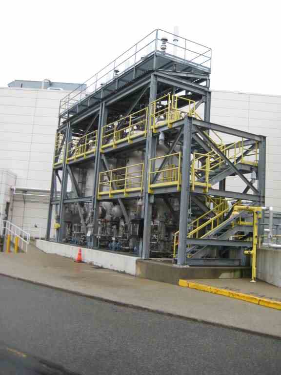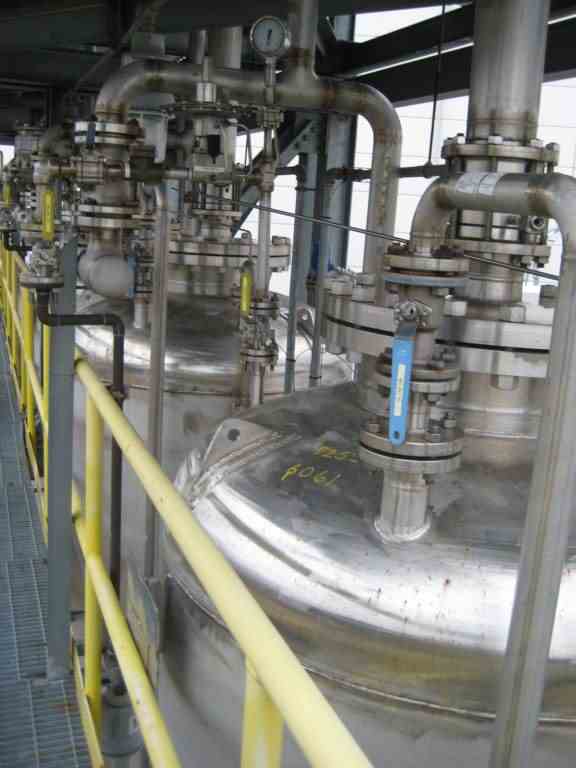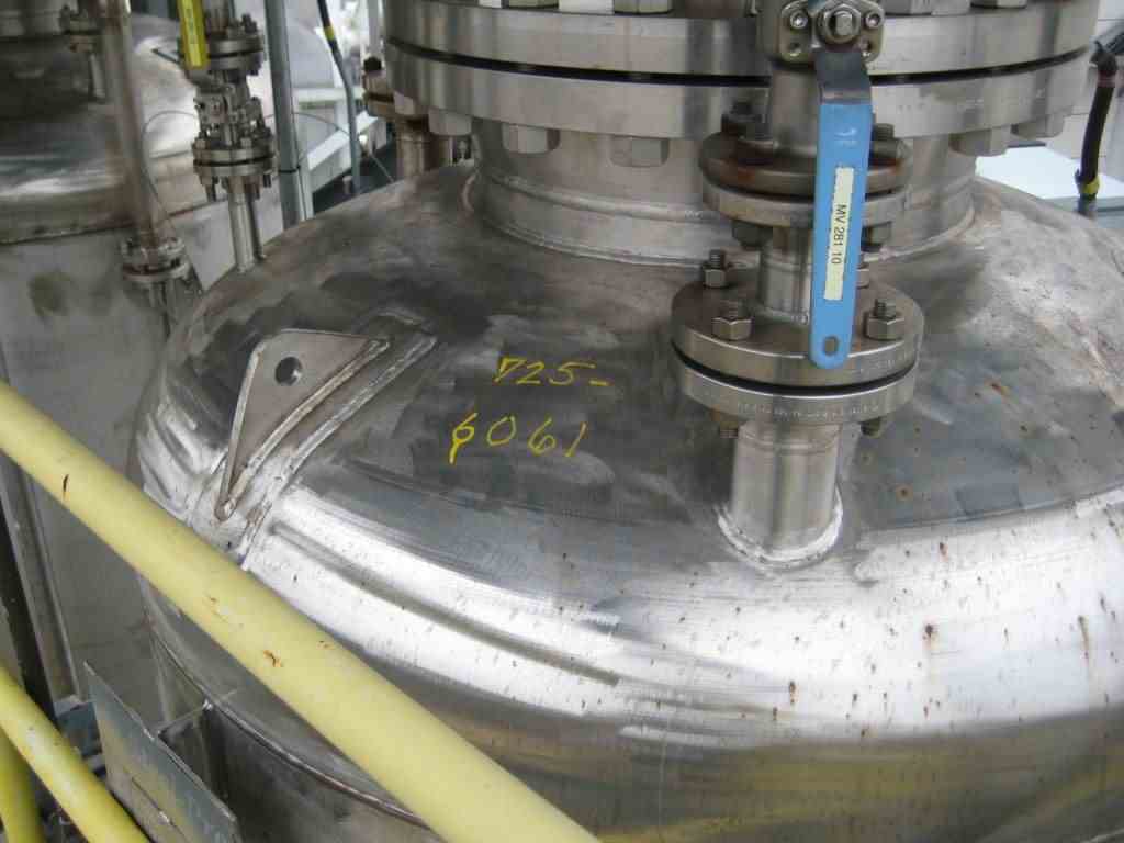Used Steel Pro approximately 2,000 Gal. vertical 316 stainless steel tank. 5’ Diameter x 12’ straight side. With dished top and bottom heads. Rated 14.5 PSIG/Full Vacuum internal. On legs. Built 2001. S/N, 13874-A. Estimated Weight 5930#.