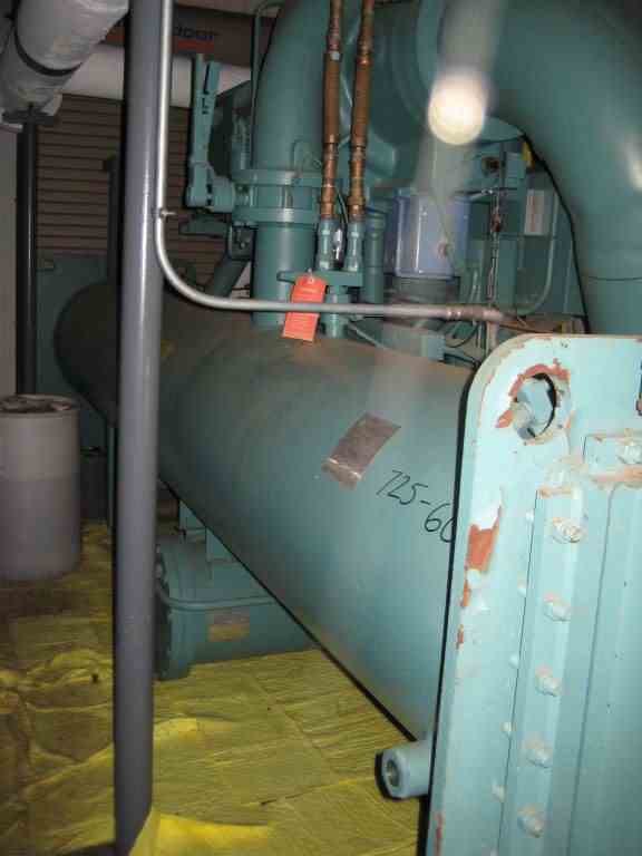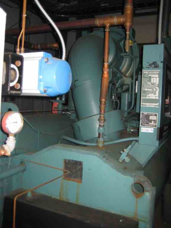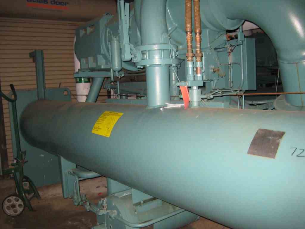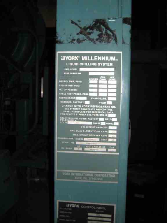 Used York 390 Ton Water cooled Glycol Chiller, Model YKCDDDG4-CME Model YDHA-41-DO Compressor. 255 KW, 3 phase, 60 cycle, 460 volt (373 FLA). 150 PSIG. 1400# charge, 134A refrigerant, 180 PSIG. Built 2001. S/N SEKM-394990. Variable speed drive with Optiview Control Centrer. Includes O&M Manual.