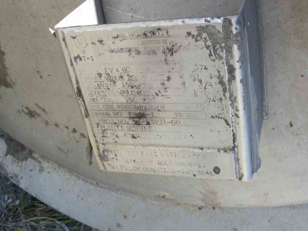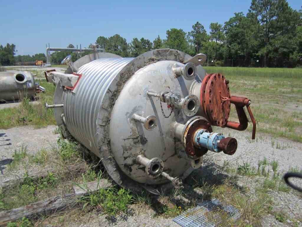 Used 1,000 gallon 304L stainless steel reactor body, Mfg. by Industrial Alloy Fabricators. Rated for 60 psi & FV @ 1-20 Deg F. @ 60 psi with internal coils rated for 100 psi @ 374 Deg. F; rated for 150 psi @ 374 Deg F stainless steel 1/2 pipe jacket. Dimensions: 64" Dia. x 68" T/T welded dished heads. Unit is missing drive but has mechanical seal and agitator. Serial #F986-1, National Board #2201, Year Built 1995. (See#6509 for gear box)