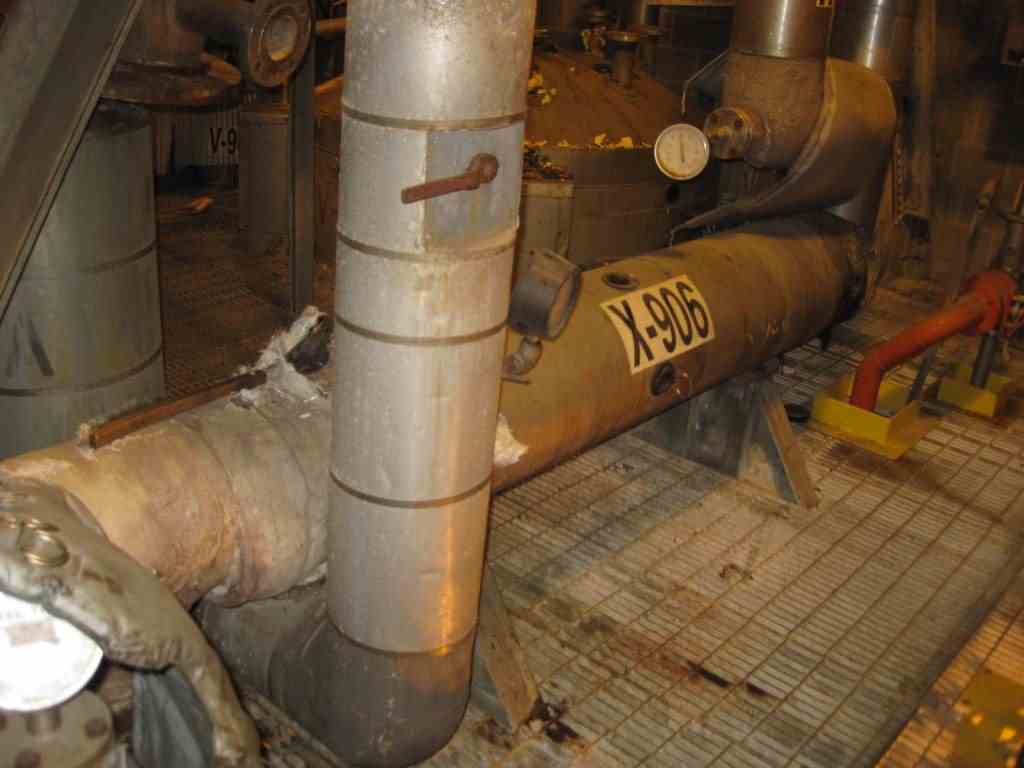 304L stainless steel shell rated for 100 psi @ 150 Deg F, 316L stainless steel tubes rated for 100 psi @ 150 Deg. F. Shell diameter 6.625" O.D. & 3/4" Dia. Tubes. Serial #T101805D, National Board #5011, Year Built: 1990, Previous Service: Chiller Product Receiver - Grignard, 600#
