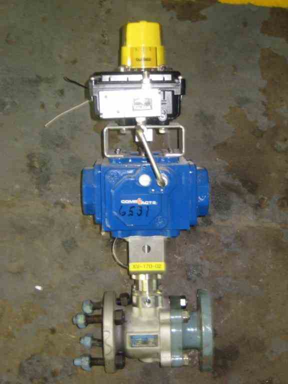 Used 1-1/2" Hastelloy-C full port Pneumatic Ball valve. 1-1/2" - 150# ANSI flange inlet and outlet. CW12M-Body, Hastelloy C-Ball, TFM seat. Position indicator. Mfg by Habonim, Comp4ACT-II Actuator. Type: 15A73P-CCCWAV-150HYD.