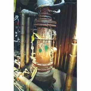 12" dia. x 150" long, glass lined, jacketed, packed column. MFD by Pfaudler, Serial # J014961, built 1997., NB# 48407, Glass # 9115. ASME code stamped for 150 psi & FV @ 450 deg. F internal, 90 psi on jacket @ 450 deg. F. Openings: Top - 1-6", side shell 1-6", 1-5"; bottom 1-3". Mounting lugs.