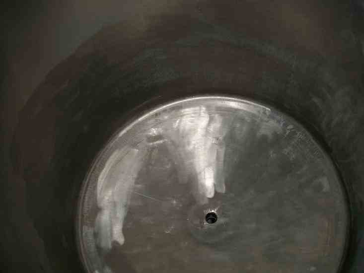 Used approximately 125 gallon stainless steel tank. 32" diameter X 36" straight side. Open top, with loose fitting cover, dished bottom. 1 1/2" center bottom drain. Mounted on stainless steel cart with casters. Includes stainless steel 1 HP Tri-clover easy clean pump with Allen Bradley controls.