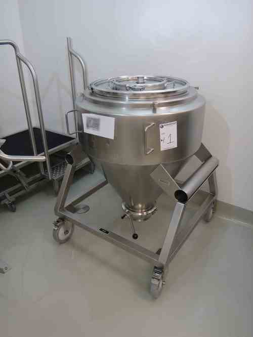 Used 300 liter LB Bohle bin, model MCG 300, stainless steel construction, with valve.