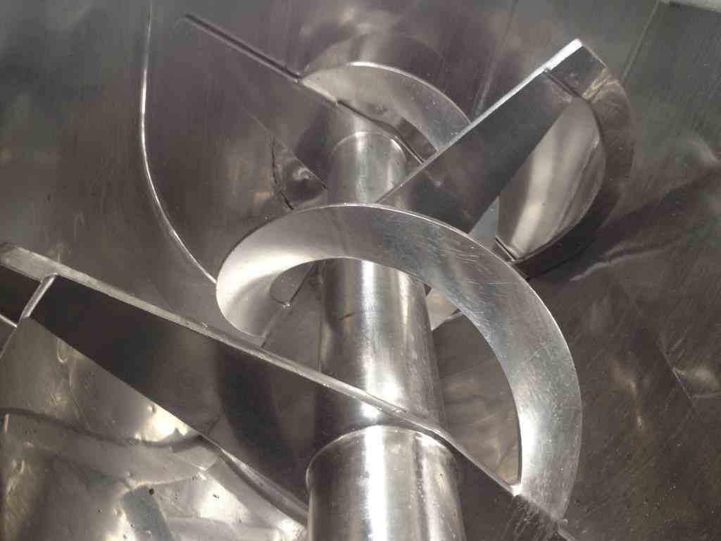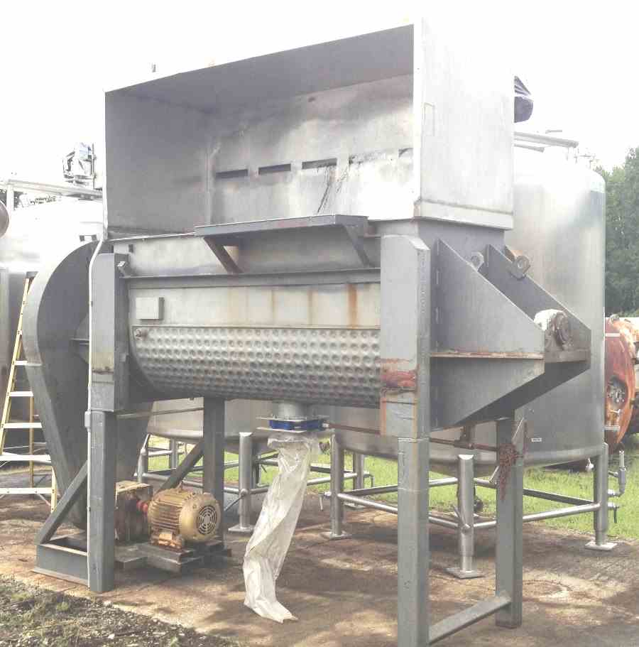 Used approx. 64 Cu. Ft. Stainless Steel, Jacketed, Ribbon Blender. Built By Overly Inc. Jacket rated 90 PSI @ 250 Deg. F. NB# 317. Trough is 36" wide x 96" L. Has 8" CBO and 15 HP drive with gear rated 1765 RPM, 130 RPM output. Final output is approx. 30 RPM. Chain Drive. Last used in food plant.