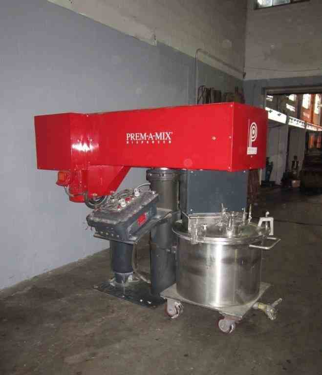 Used 150 Liter (40 gallon) Premier Dual Shaft Vacuum High Speed Disperser. Model ESD/V/10/5, Serial number 92016-98-0014. built 2- 2001. Stainless steel contact parts, with jacketed can and vacuum cover. Vacuum rated.