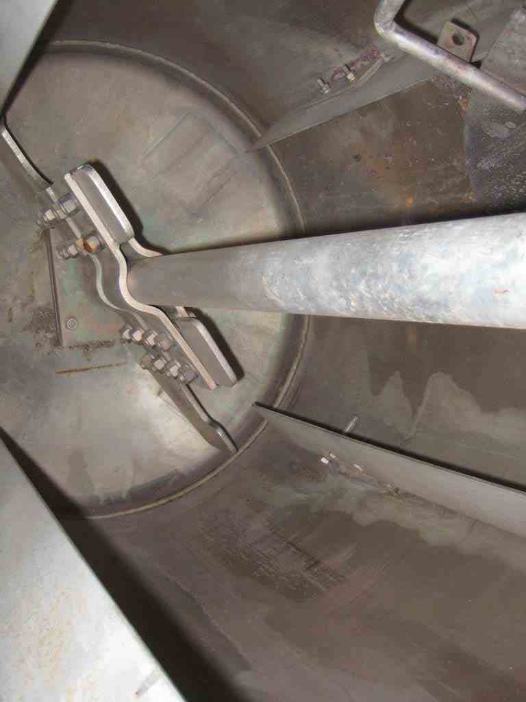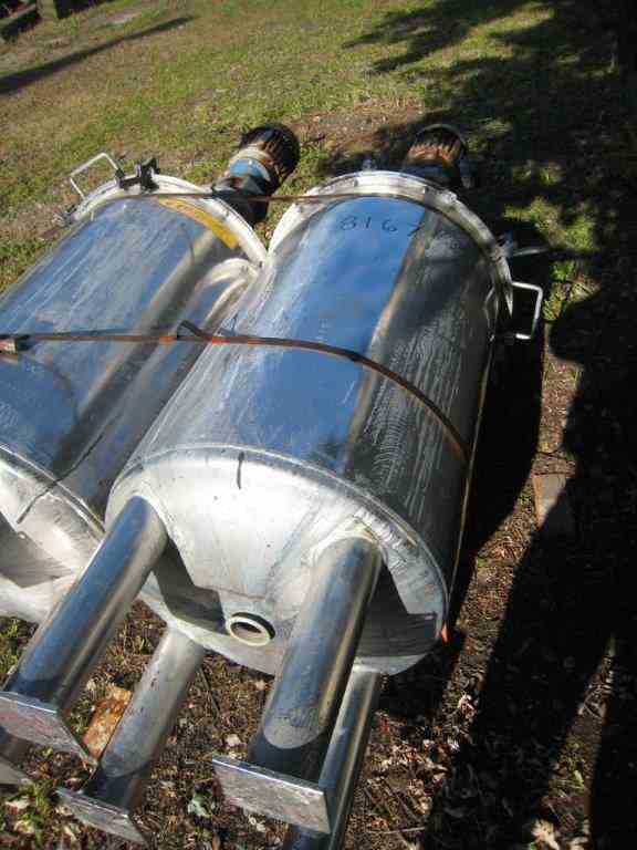Used 78 Gal SS Mix Tank. 2' dia x 3' straight side (8' 2" OAH). Closed top, hinged cover, 4" dished bottom with 2" outlet. Center mount Agitator, 1 HP/3/460V, 1755 RPM w/gear reducer(31.3 final RPM). 1.5" SS Shaft with 2 blade propeller. Internal baffles. Mounted on 4 legs. Previous use: Paint Industry.