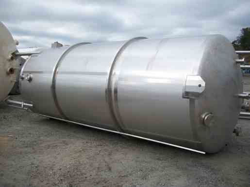Used Walker 5000 gallon 316L stainless steel vertical storage tank. 84" Diameter X 208" high straight side. Internal rated 15 PSIG / 6" HG vacuum at 250 degrees F. National Board # 571. S/N VHT-3540. Welded dished heads. Top Fittings: (1) 3" sanitary, (1) 1.25" sanitary, (2) 3" flanged, (1) 3" X 1 1/4" sanitary, and (1) 3". 3" side bottom outlet, (2) 1" side bottom thermowells. 2.5" sanitary bottom outlet and (1) 3" offset bottom outlet. 16" X 20" side bottom swing-in manway. (2) 2" 304 stainless steel insulation rings. Mounted on (4) stainless steel legs.