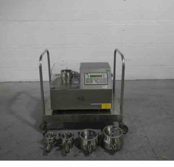 Used Diosna high shear granulating mixer, model P 1/6, stainless steel construction with 6, 4, 2, 1 and .5 liter bowls all with choppers, 1 KW, 230 volt motor drive, on base with controls, serial# 355-196, new 2006.