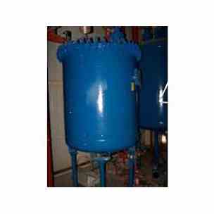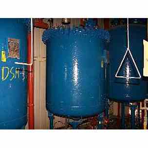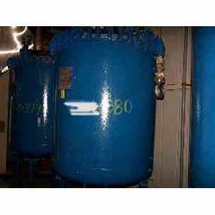 Used 300 gallon Pfaudler #5015 glass lined vacuum receiver. Model VR42-300-25. 42" diameter x 54" deep. Clamped top. Internal rated 25/FV @ 450 degrees F. NB# 44207. Mounted on legs. Fittings top: (1) 3" and (2) 2". 2" center bottom drain. (NOTE: Vessel passed spark test, but chip on 2" nozzle)