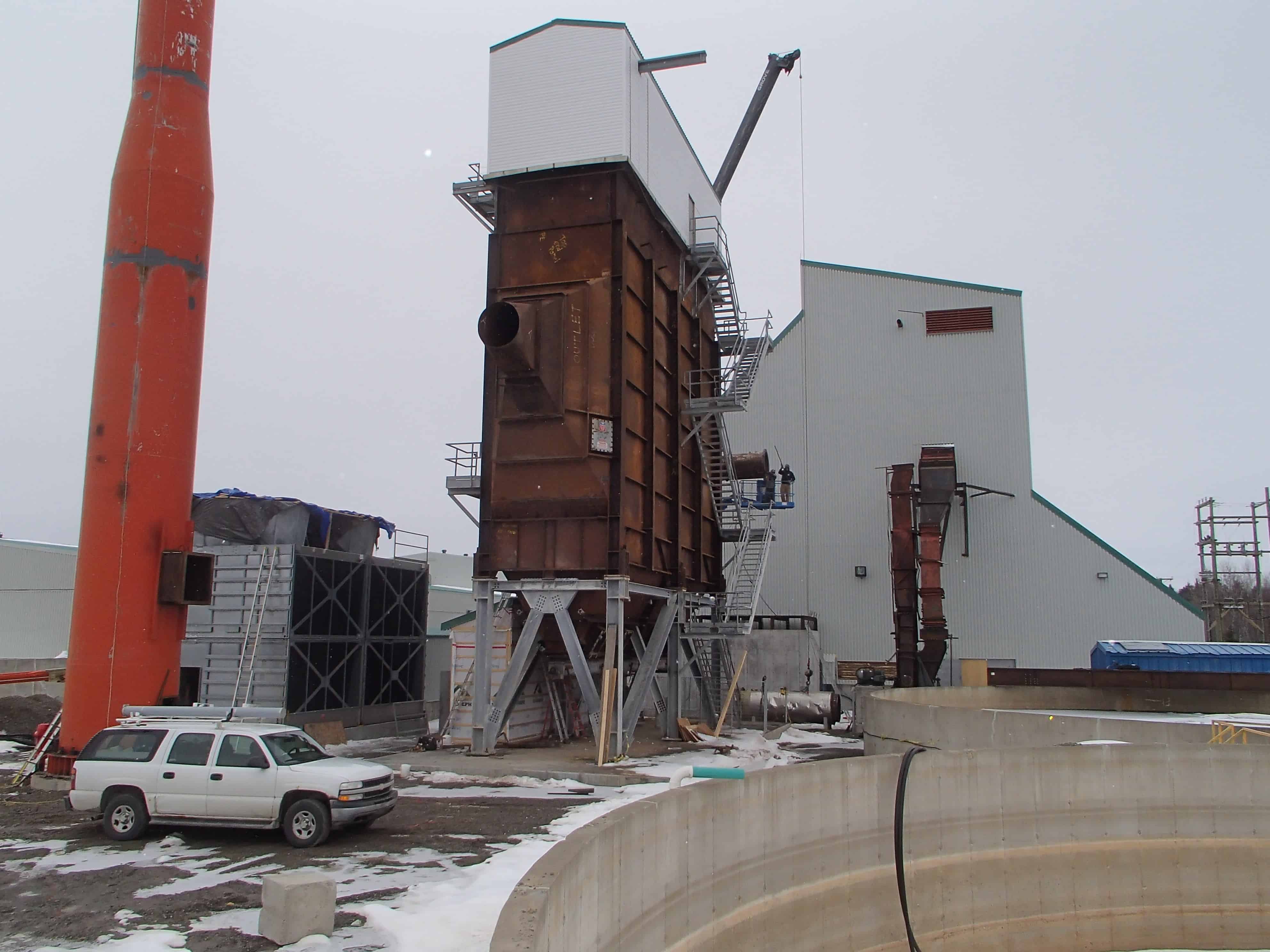 Used 5MW Biomass Power Plant. Peter Brotherhood turbine and Gear Reducer operating at 10251RPM with output speed of 1800RPM. Coupled to a GEC 5900kVA, 60 Hz, 4160V Generator. Includes extraction pumps, vacuum pumps, lube oil system Woodward UG8 governor and controls. Foster Wheeler two drum boiler rated at 50000 lb/hr, 900 PSIG, 900F, 679 Boiler with Detroit Stoker water cooled vibrating inline grate, tubular air heater, economizer, Bahco multi-cyclone dust collector, Detroit Stoker cinder classification and reinjection system. Coen light oil burner, Copes Vulcan sootblowers. Design boiler efficiency 73% with a flue gas temp of 149C operating on 100% wood chip fuel. Approx. boiler dimensions 14ft x 21 ft x 60ft - less air heater and dust collector. Anderson water treatment plant, Foster Wheeler feedwater heater rated to heat 51000 lb/hr feedwater from 293F to 365F uses 3884 lb/hr steam at 181psia and 600F. AS Leitch deaerating heater capacity 9900 lb. Motor control centers, Fisher Provox distributed control system, chemical feed system for hydrazine, ammonia, and phosphate. Compair V100A oil free reciprocating compressor with 25HP motor. Pumps (2) Goulds vertical turbine 20GCC/1 VIT FF Seawater circulating pumps, (2) Goule Vertical turbine freshwater pumps, (3) Gould horizontal end suction circulation pumps, (2) Sustrand P3 Boiler feed Pumps. Cleaver Brooks Heating boiler (hot water)P100-40HP-60 psig. Clyde Bergmann Environmental Elements ESP. (2) Cooling towers, fans, heat exchangers, and auxiliary equipment.