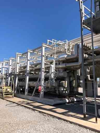 Used 18 MM SCFD Cryogenic NGL (Natural Gas Liquids) Recovery Unit built in 2008. The unit was designed to recover ethane and other heavy components from natural gas through cryogenic process. The plant includes 5 sections: 1. Inlet TEG dehydration; 2. Molecular sieve dehydration; 3. Turbo-expander; 4. Residue gas compression; 5. NGL product pipeline; 6. Support utilities.