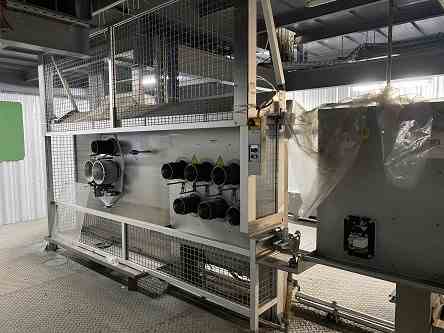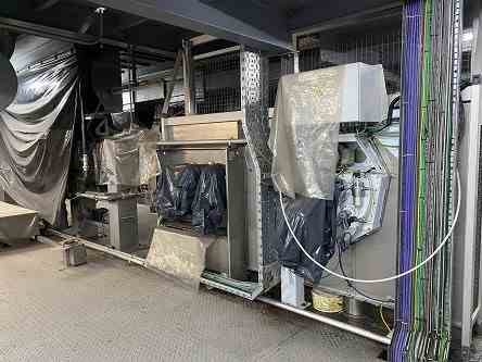 Used PET staple fiber plant supplied by Neumag of Germany. Layout titer 1.2 den; spin pack size 410 mm; No. of holes 6800; spinning speed 1210 m/min; spinning positions 8. Extruder throughput range 8 - 12 kg/h; screw size 30 mm, 24 L/D; cylinder heating 3 zones / 10 KW; AC motor 8 KW; polymer pipeline max length 5 m. Polymer distribution pipeline (double jacket, HTM vapor heated) 1 X 8 Pos. Spinning pitch 600 mm; spinning pump 161 cm3/rev. Spinnerets dia 410 mm (8 in operation and 16 standby), 6-10 den for titer, 1860 holes, round and hollow profile. The plant has Siemens PLC control system. All technical documents are available. The plant can use recycled PET flakes as feedstock. Two (2) extruders manufactured in 2023 are included in the sale package. Each extruder has flow / production capacity of 1,500 Kg/hr; and LD38 thread with 6,000 mm; pressure up to 200 Bar; with a 170 mm diameter screw; using Gneuss/150 filters.