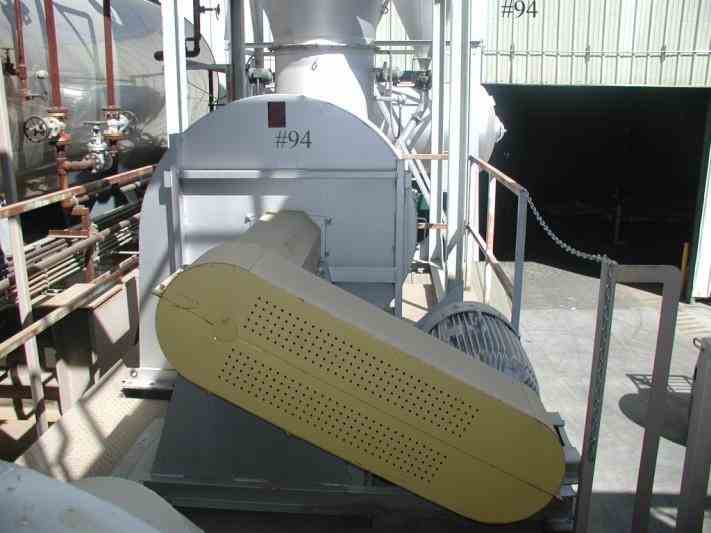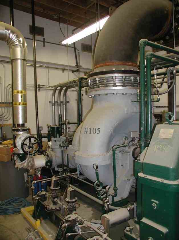 Unused 1.2 MW biomass cogeneration (CHP) power plant with modular design and Elliot steam turbine (model 2DYR3) for sale immediately available. The plant can be upgraded to 2 MW with a new generator. The plant can burn bark, sawdust, agricultural wastes such as peanut shells, rice hulls, straw, animal residue, wet wood, etc. This plant converts such waste products into useable thermal and electrical energy. This solid waste stream can be converted into particle form by the use of a commercial shredder, conveyed to a silo for storage, and then fed automatically into the multi-zone burner. Steam is generated through a low pressure 275 degree (de-rated from 300 degree) stainless steel boiler with a heat exchanger. Inlet steam is 475 PSIG at 700 degrees FTT with a maximum of 22,000 lbs/hour but could be increased to 24,000 lbs/hour. Exhaust steam pressure is 3” HgA at 5449 rpm but designed to run at 4” absolute vacuum. Steam is transferred to the 3-stage back pressure turbine rated at 1654 HP detuned to 1200 HP to match the generator.