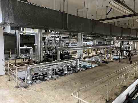 Used PET Partially Pulled Yarn (POY) plant including 3 direct spinning lines with totally 468 spinning points from Zimmer of Germany (Model: RICO - Fil. spinnerets diameter 100 mm and 85 mm) and 1 polyester chip spinning line from Barmag of Germany (spinnerets diameter 80 mm). It has a central polymer filter with 15 microns finesse. Each Zimmer line has 20 TPD capacity. Plant set up in a 3-story building, total space 1,000 m2. Power consumption 500 KW for the entire plant.