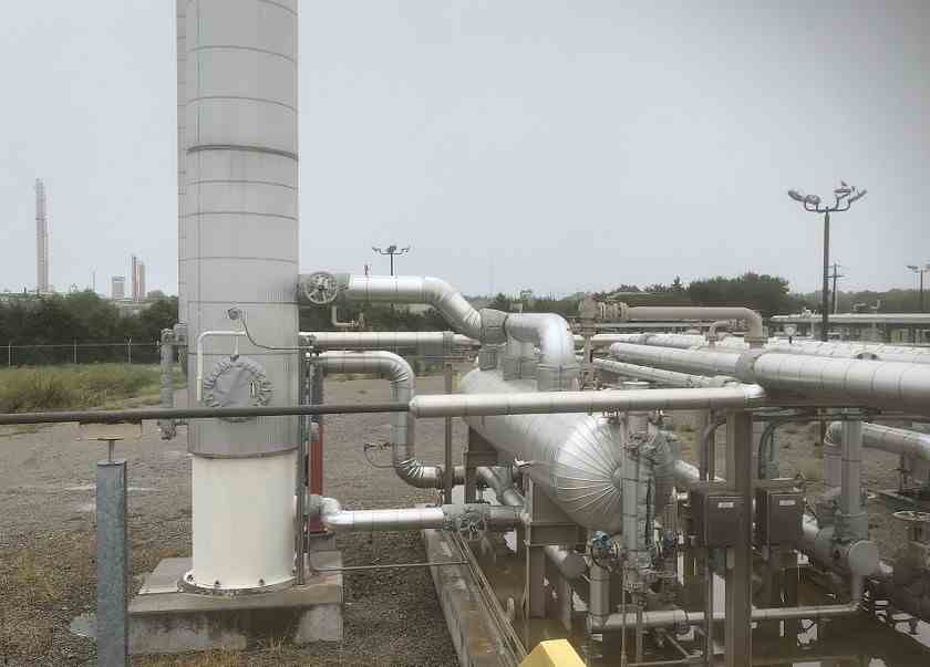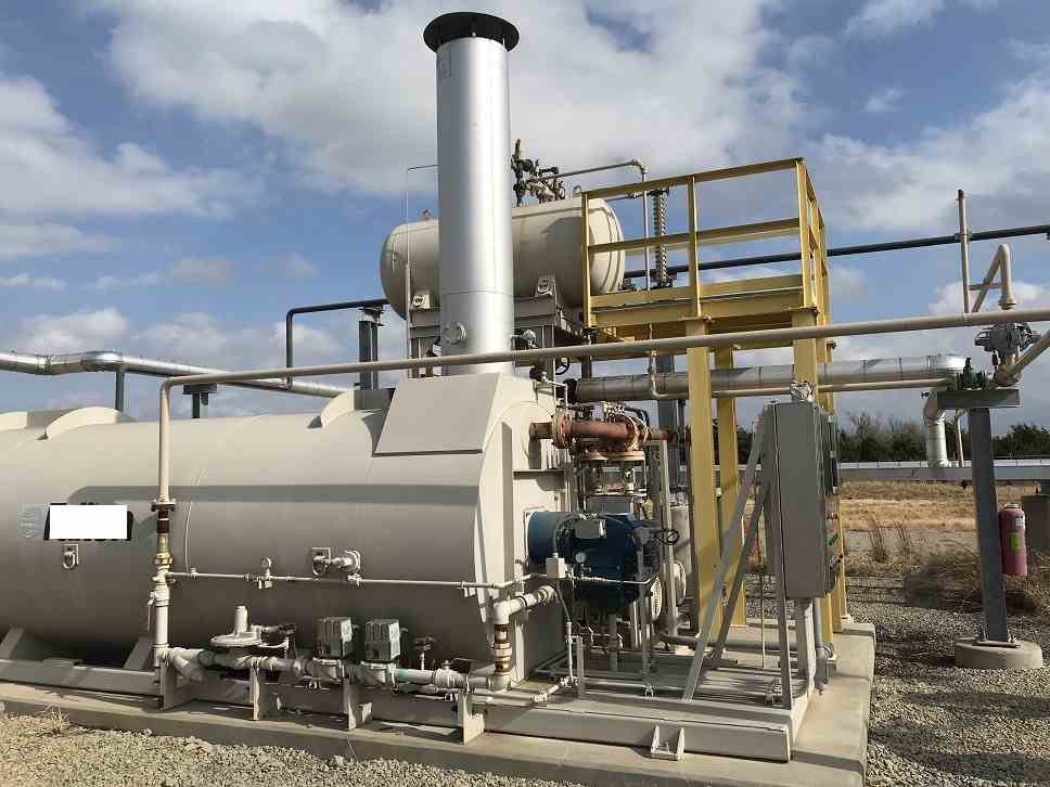 The stabilizer system consists of a feed-bottom exchanger (to maximize the heating efficiency and minimize the fuel gas consumption and product cooling cost), a stabilizer column with valve trays (for vapor-liquid contacting), reboiler (to warm up the hydrocarbon liquids and vaporize the light hydrocarbons using a heat medium), and a product cooler (to reduce the temperature of liquid products). Hot vapor, which is produced in the reboiler, flows up the column, stripping out the light hydrocarbons (e.g. C1, C2, C3, etc.) from the relatively colder liquid stream flowing down from the top of the tower to produce a stabilized liquid product. The overhead vapors may be used as fuel gas or recompressed into the sales gas pipeline or the front of a gas processing facility.