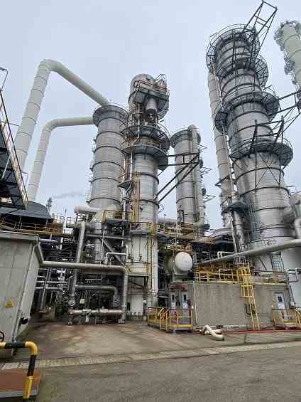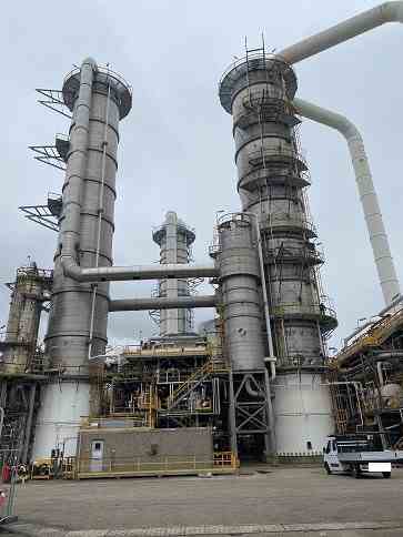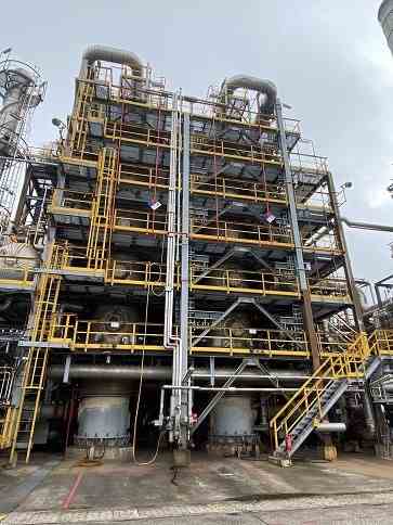Used styrene plant consisting of 610,000 TPY ethylbenzene (EB) production unit and 530,000 TPY styrene monomer (SM) production unit. The first process section in the SM unit is cracking where EB is in two catalyst filled reactors converted with steam into SM and hydrogen through dehydrogenation. The process operated at high temperature. The second process section in the SM unit is finishing which purifies the SM and recycles unused EB to the feed of the cracking section.