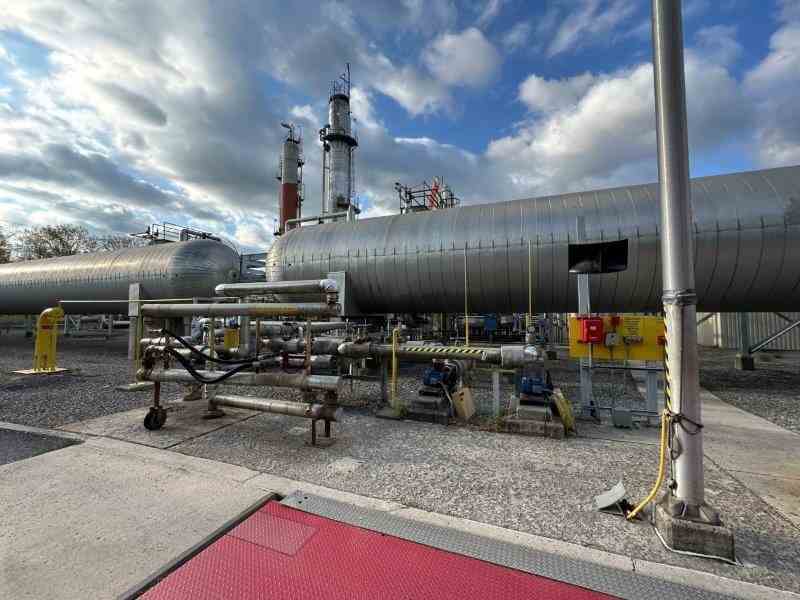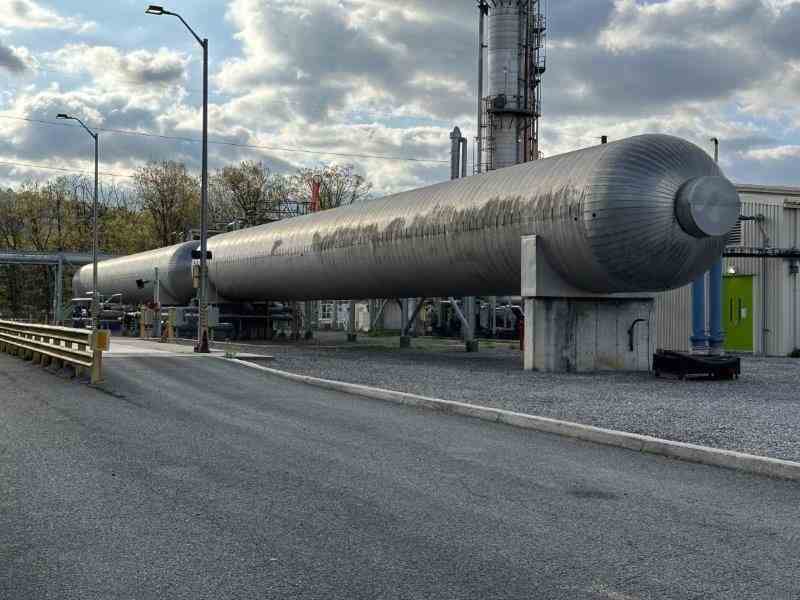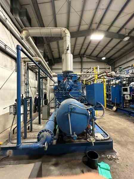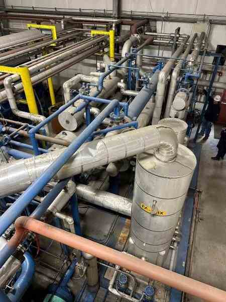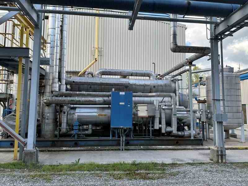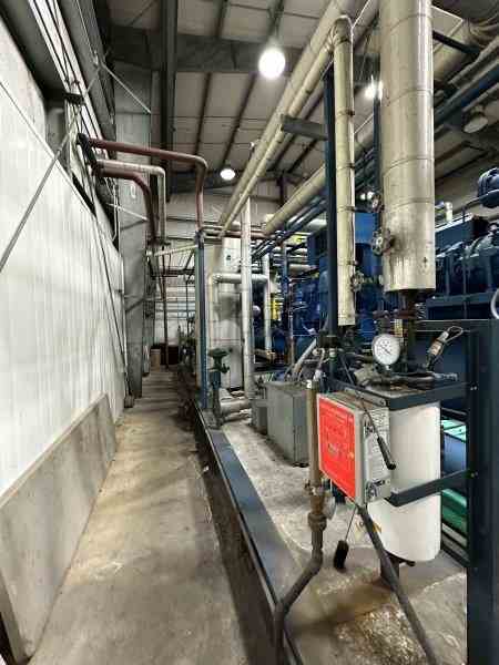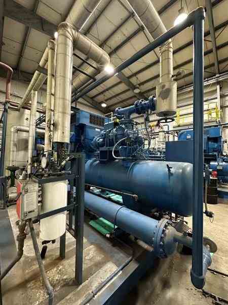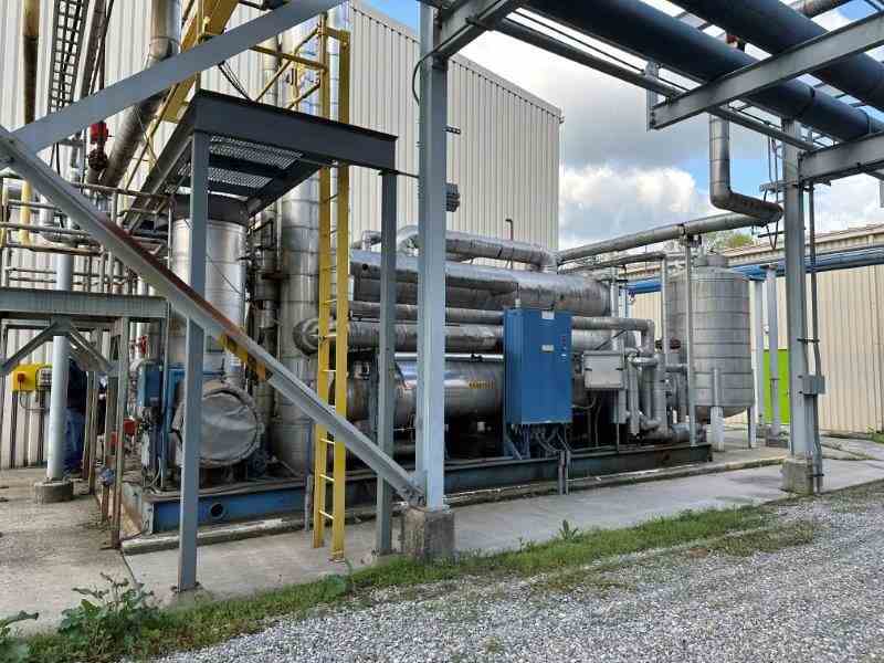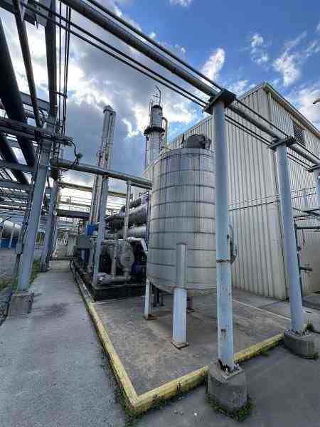 Used 150 STPD Carbon dioxide liquefaction plant including CO2 compression, purification and liquefaction units as well as ammonia refrigeration system. Designed by SALOF. Inlet CO2 feed gas contains 97.53% of CO2, 2.44% of H2O and 0.03% of N2, at pressure of 4.4 PSIG and temperature of 105 °F. A booster increases the gas stream pressure to 300 PSIG through 2-stage compression. After a series of filters and dryers, the gas is liquefied into beverage-grade liquid CO2 (99.99% purity). The plant is skid-mounted type. All the major process equipment is inside a building, maintained in good condition. Full technical documentation is available. Also available are two liquid CO2 storage tanks (700 tons).